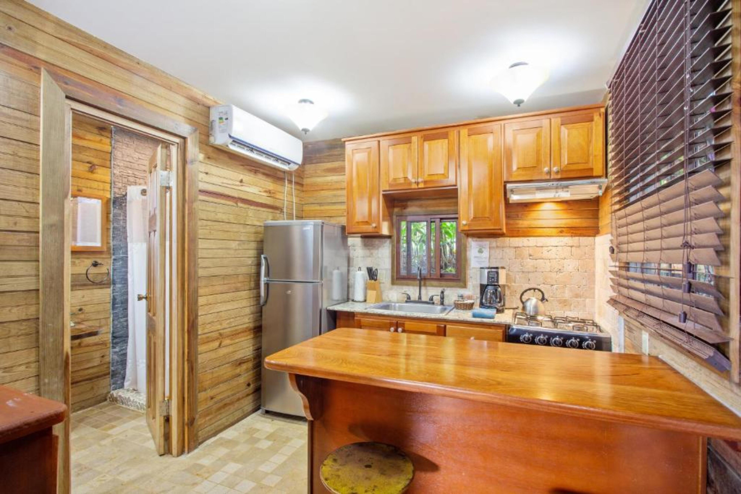 With an area of 130 m², this lodge offers a spacious bedroom with an extra-large double bed, a private bathroom, and a fully equipped kitchen area perfect for short or long stays. Relax on the private balcony with sea views and enjoy the jungle surroundings in a carefully designed space.