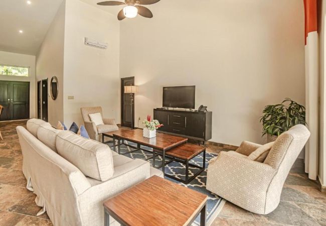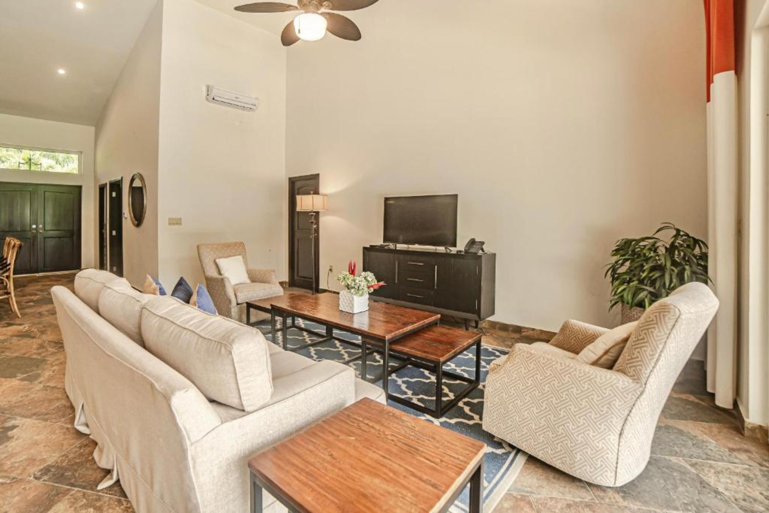 The villa has air conditioning in all spaces, spacious common areas with panoramic views of the ocean, a fully equipped kitchen, coffee area, living room and a private terrace with swimming pool. Ideal for families or groups looking for privacy without giving up first-class services.