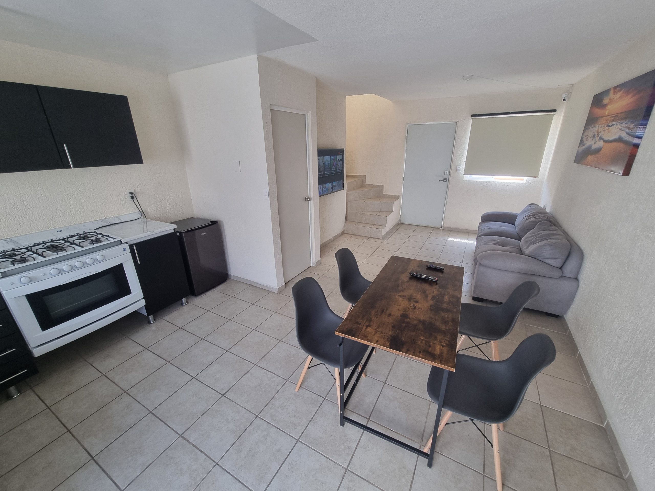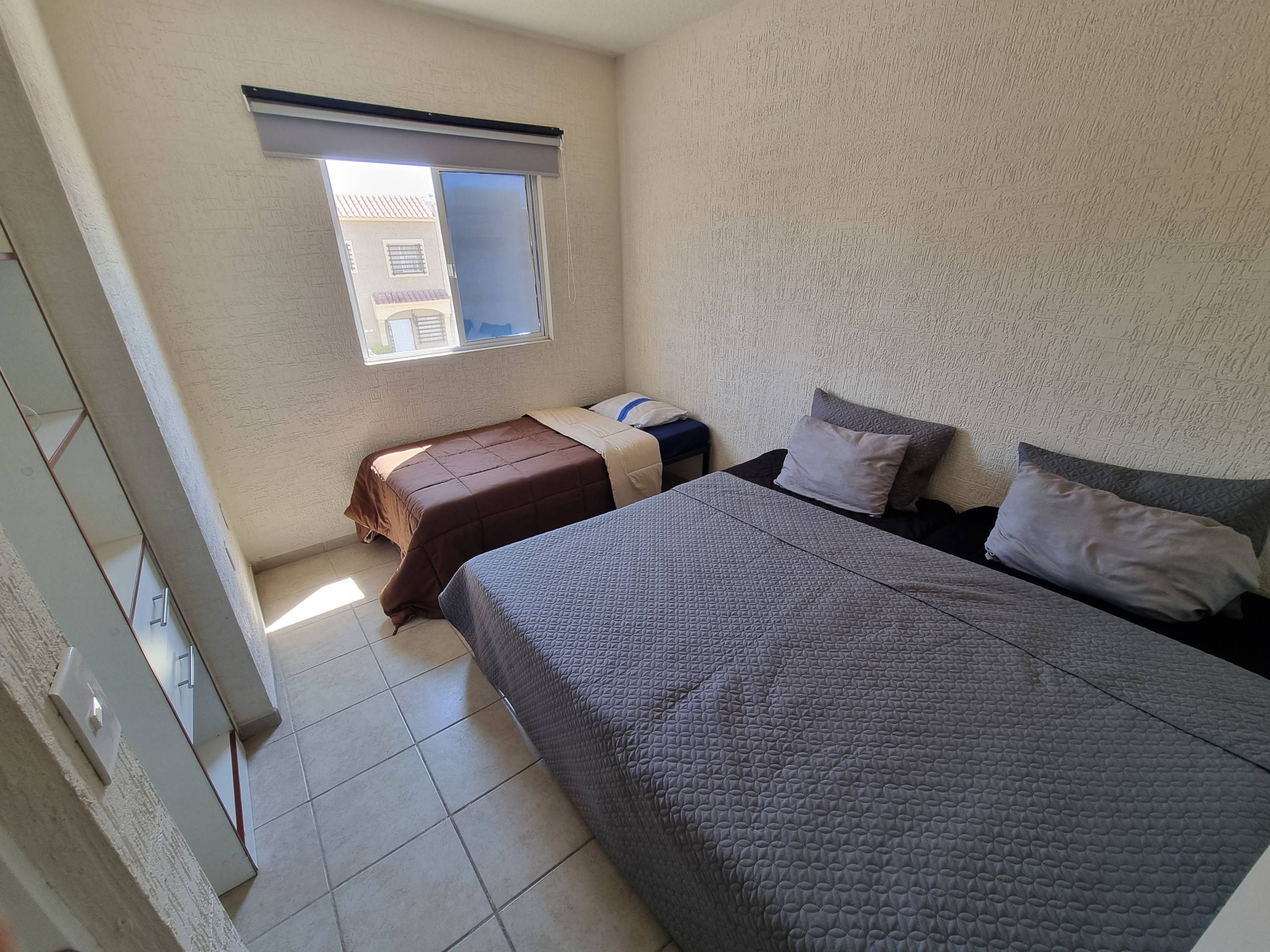The apartment in Santiago de Querétaro has 2 bedroom(s) and capacity for 6 people. Accommodation of 80 m² beautiful and very bright. It is located 4 km from the park "Area Verde", 10 km from the park "Indeq Parque Querétaro 2000", 10 km from the park "Parque Hollan", 14 km from the park "Plaza de la Corregidora", 15 km from the park "Parque de Carretas", 15 km from the park "Unidad Deportiva José María Truchuelo", 15 km from the park "Parque Jardines de la Hacienda" and is located in an ideal area for families and in the residential complex. It has garden furniture, terrace, internet access (wifi), dryer, children's area, community pool, outdoor parking in nearby building, 1 TV. The American kitchen, gas-powered, is equipped with refrigerator, oven, dishes/cutlery, utensils/kitchen and water heater.